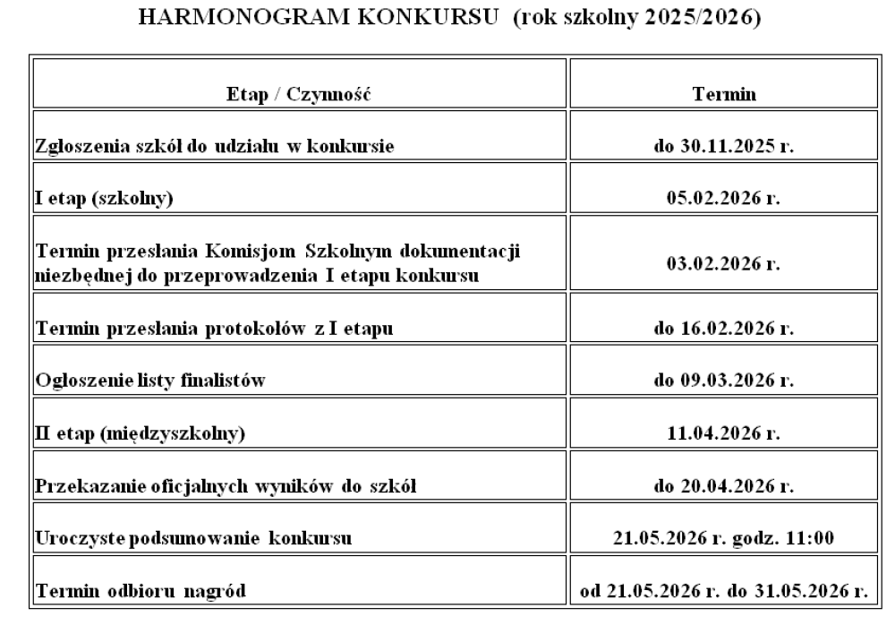 Nadmieniamy, że Konkurs jest umieszczony w wykazie zawodów wiedzy, artystycznych i sportowych, które mogą być uwzględniane przez dyrektora szkoły jako szczególne osiągnięcie i wpisywane na świadectwie ukończenia szkoły podstawowej.