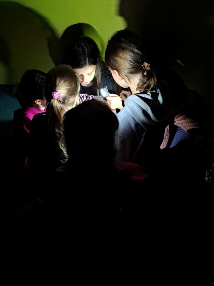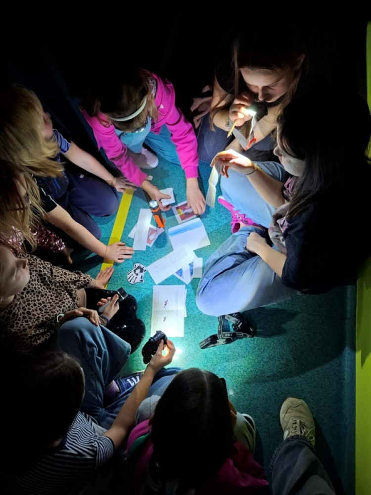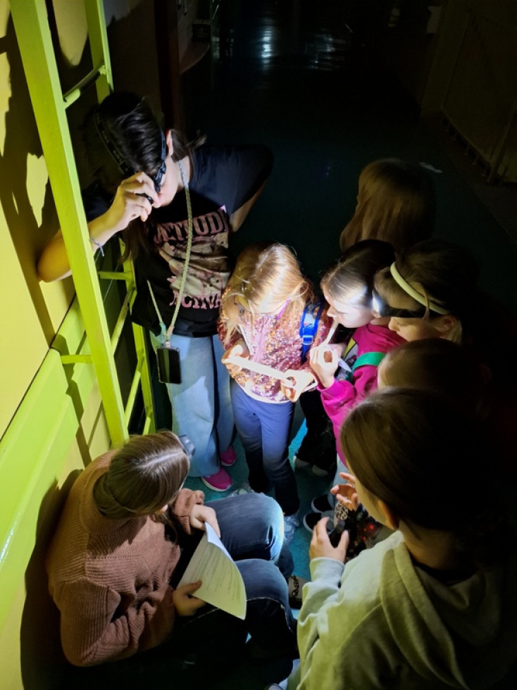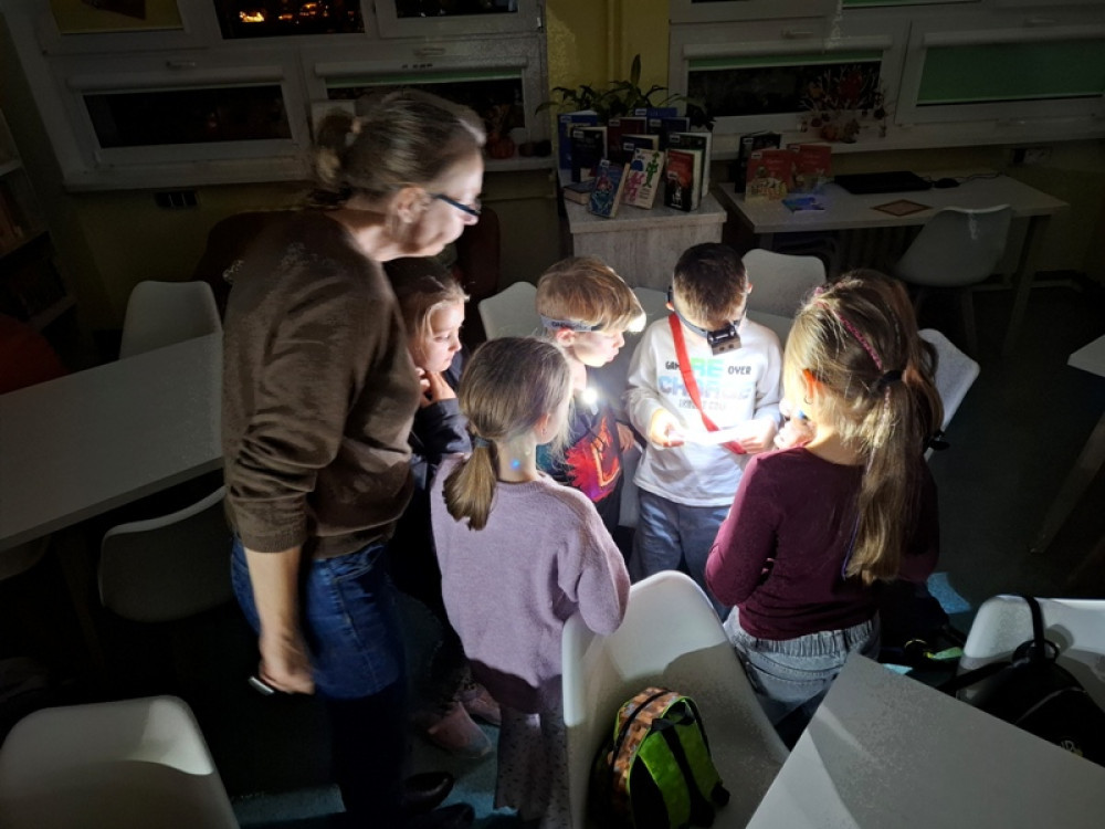 Dnia 11.10 odbyła się w naszej bibliotece Noc Bibliotek. Tegoroczna edycja przebiegała pod hasłem "Moc bibliotek, moc czytania". Uczestnicy z klas 3-5 wzięli udział w grze terenowej "Baśniobór". Uczniowie w dwóch grupach poruszali się po terenie szkoły, kierując się wskazówkami i mapą. Rozwiązując zadania baśniowych postaci, przemierzali szkolne korytarze, by odnaleźć magiczne pióro i uratować życie Baśniarki. Nasi uczestnicy wykazali się wiedzą, sprytem i odwagą. Poruszając się w mroku ,udowodnili, że Moc bibliotek i moc czytania jest z nami!!!