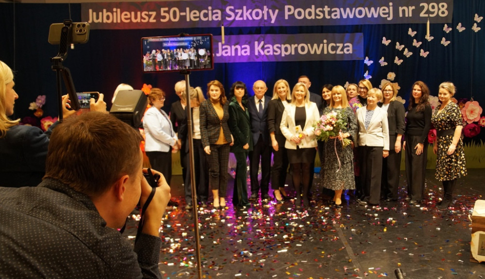 Za nami jubileusz 50-lecia Szkoły Podstawowej nr 298 im. Jana Kasprowicza w Warszawie. Dzień 12 grudnia 2024 roku był niewątpliwie jednym z najradośniejszych w dziejach naszej placówki. Jubileusz zgromadził przede wszystkim osoby, które tworzyły i dalej tworzą naszą historię, emerytowanych nauczycieli, absolwentów, całą naszą społeczność szkolną. Uświetnili go swoją obecnością wspaniali goście: Senator Rzeczypospolitej Polskiej pan Marek Borowski; Zastępczyni Burmistrza Dzielnicy Targówek m. st. Warszawy pani Małgorzata Kwiatkowska; Zastępczyni Burmistrza Dzielnicy Targówek m. st. Warszawy pani Monika Rutkowska; Wiceprzewodniczący Rady Dzielnicy Targówek m. st. Warszawy pan Jacek Duczman; Radna Dzielnicy Targówek m. st. Warszawy, Przewodnicząca Komisji Bezpieczeństwa, Zdrowia i Inicjatyw Lokalnych, absolwentka naszej szkoły pani Jolanta Miśkiewicz; Radna Dzielnicy Targówek m. st. Warszawy, Przewodnicząca Komisji Edukacji i Wychowania pani Aneta Wyczółkowska; Radna Dzielnicy Targówek m. st. Warszawy, Przewodnicząca Komisji Sportu i Rekreacji pani Justyna Rucyk; Główna specjalistka w Wydziale Edukacji i Wychowania dla Dzielnicy Targówek m. st. Warszawy pani Katarzyna Pachnowska; Proboszcz Parafii Świętego Włodzimierza w Warszawie ksiądz Marek Twarowski; Proboszcz Parafii Matki Bożej Królowej Polski w Wyszkowie ksiądz Jarosław Balikowski; Prezes Oddziału ZNP Warszawa Praga Północ, Targówek, Białołęka pani Ryszarda Kamińska; Dyrektorki i Dyrektorzy placówek oświatowych Dzielnicy Targówek m. st. Warszawy; Emerytowani Pracownicy naszej szkoły; Absolwentki i Absolwenci naszej szkoły. Była to wyjątkowa chwila, pełna refleksji i radości, ponieważ od chwili powstania, nasza placówka jest miejscem, gdzie kształci się nie tylko umysły, ale również charaktery. Nasza historia to nie tylko lekcje. To pasja nauczycieli, zaangażowanie rodziców i sukcesy naszych uczniów. To nie tylko budynek, to życzliwa społeczność, wzajemne wsparcie, szacunek oraz inspiracja do rozwijania talentów i poszukiwania własnej drogi.
