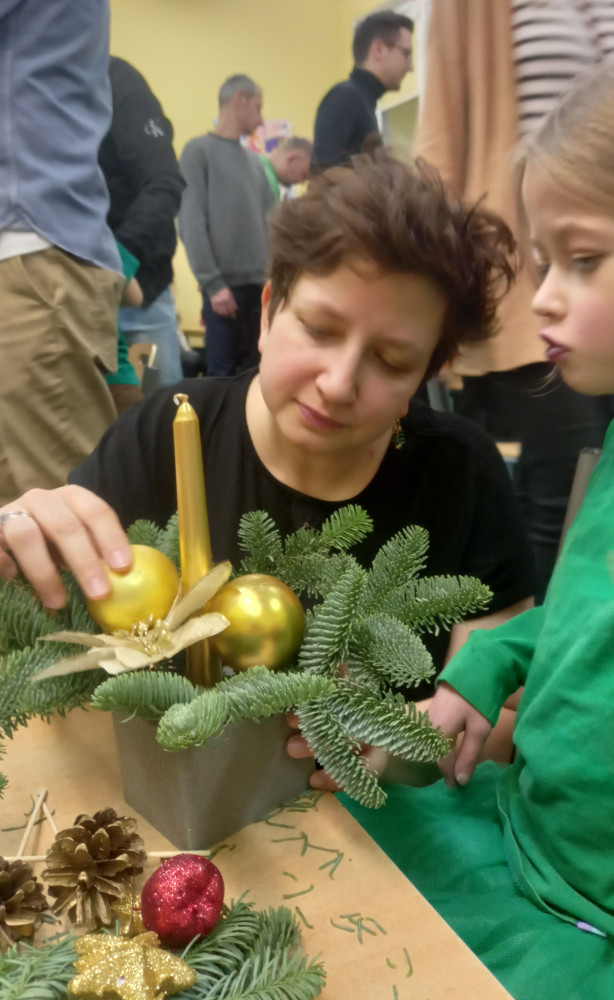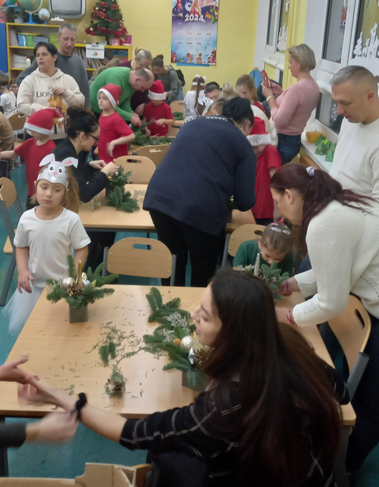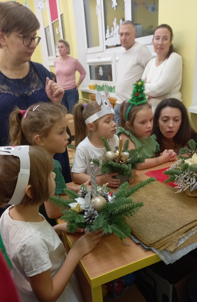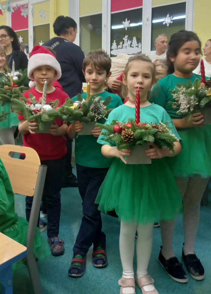 Dnia 18 grudnia grupa 0 zaprezentowała przed najbliższymi przedstawienie pt. ,,Święta na leśnej polanie". Następnie dzieci wraz ze swoimi rodzicami uczestniczyły w warsztatach i przygotowały przepiękne stroiki świąteczne.