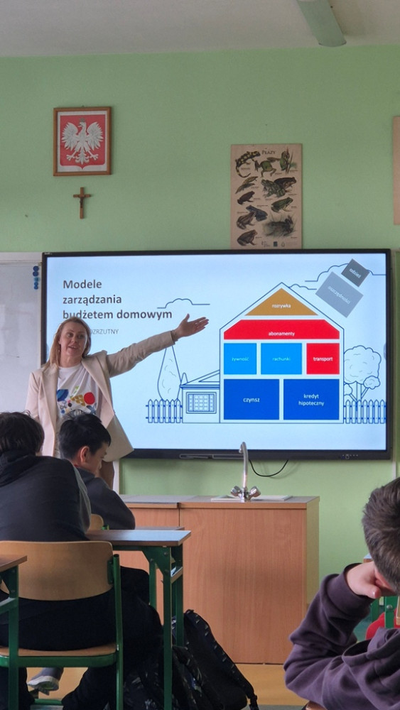 Klasa 6a wzięła udział w Programie Nowoczesnej Edukacji Finansowej Kasa z klasą. Zajęcia odbyły się pod hasłem: Budżet domowy - Dlaczego ludzie mówią: Jak dorośniesz, to zrozumiesz? i były realizowane przez pracowników Banku Polskiego. Spotkanie miało na celu przybliżenie uczniom podstaw zarządzania finansami w życiu codziennym. Podczas zajęć uczniowie dowiedzieli się, czym jest budżet domowy i jak go planować. Nauczyli się rozróżniać wydatki stałe i zmienne oraz zrozumieli, dlaczego warto oszczędzać. Zajęcia pomogły im także dostrzec, jak podejmować odpowiedzialne decyzje finansowe już od najmłodszych lat.