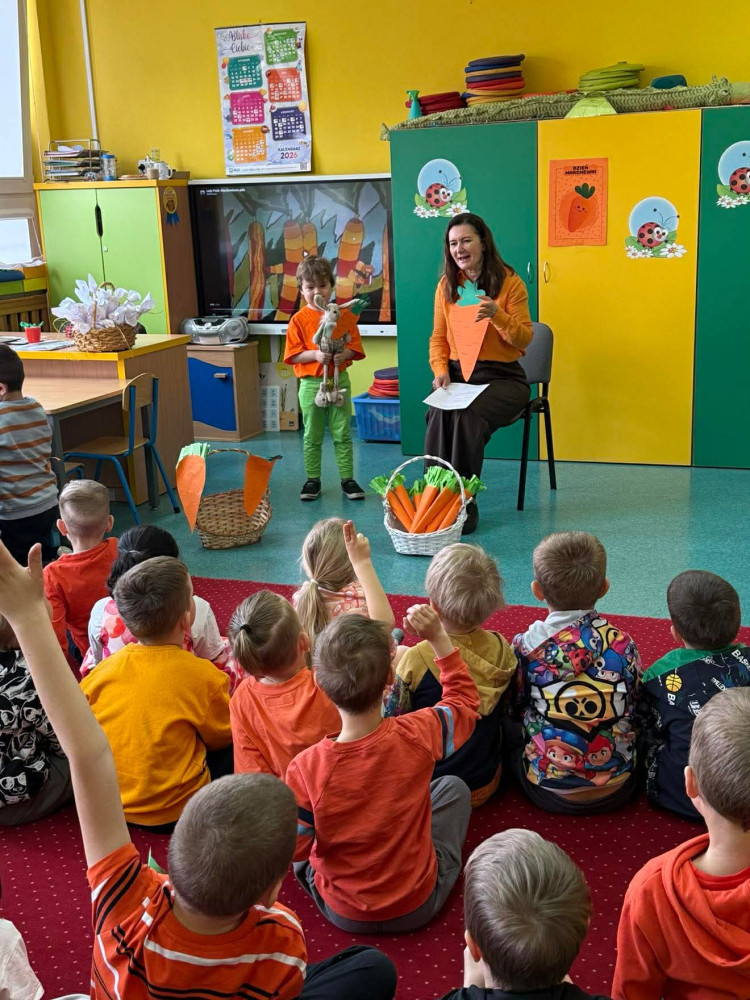 Dnia 15 kwietnia w naszym przedszkolu świętowaliśmy Dzień Marchewki. Tego dnia dzieci przyszły ubrane na pomarańczowo. Rozwiązywały zagadki, wykonały prace plastyczne. Poznały wartości odżywcze marchewki oraz miały okazję zajadać się tym wspaniałym warzywem.